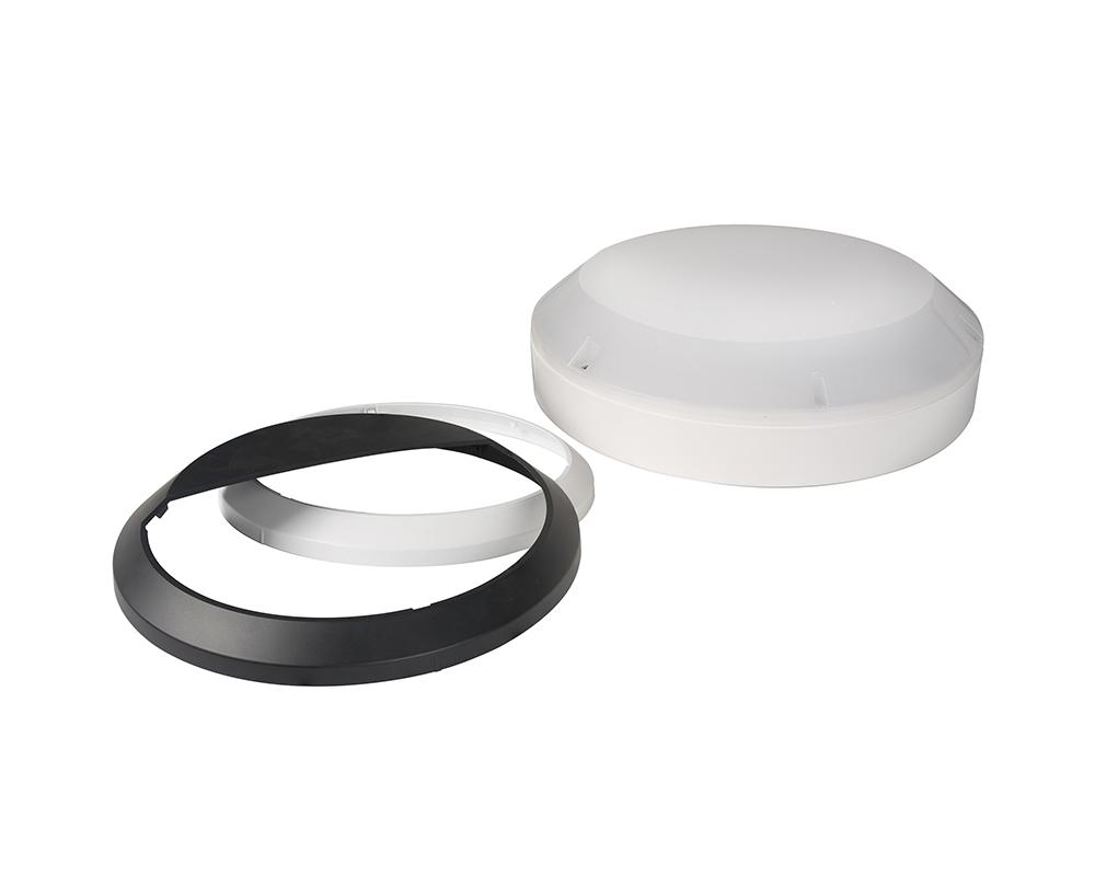 Polycarbonate base and diffuser with trim ring.